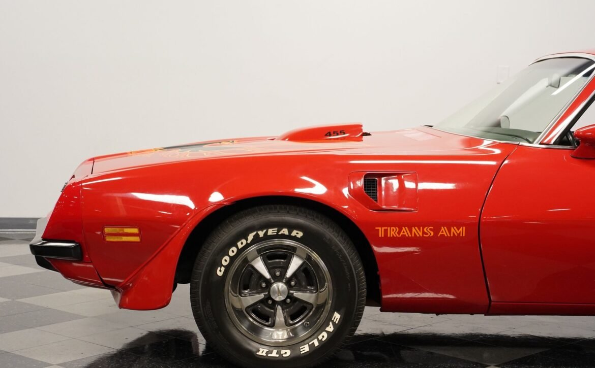 - Engine: Original 455 cubic-inch V8 with a single 4-barrel carburetor and the classic Shaker hood.